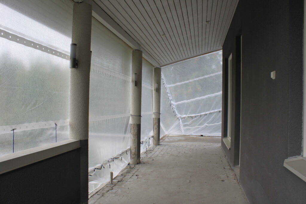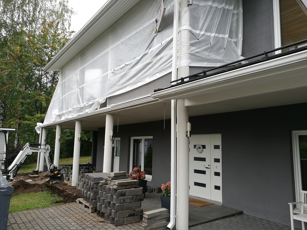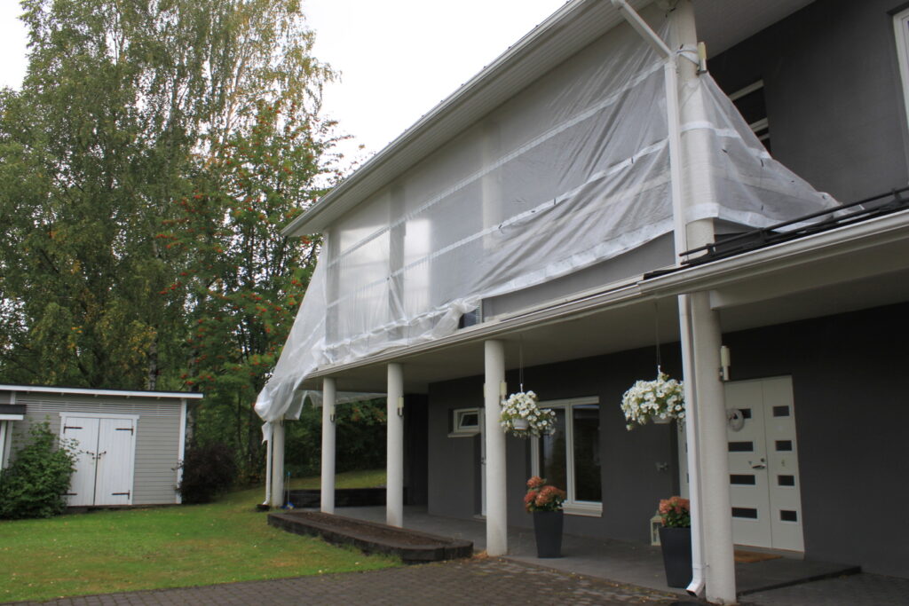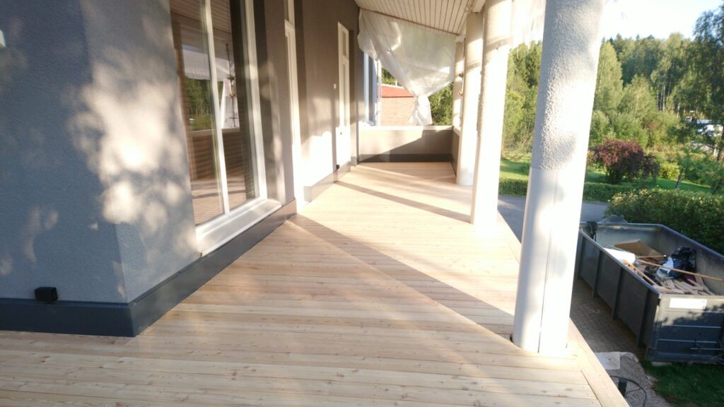 Omakotitalon parvekkeella